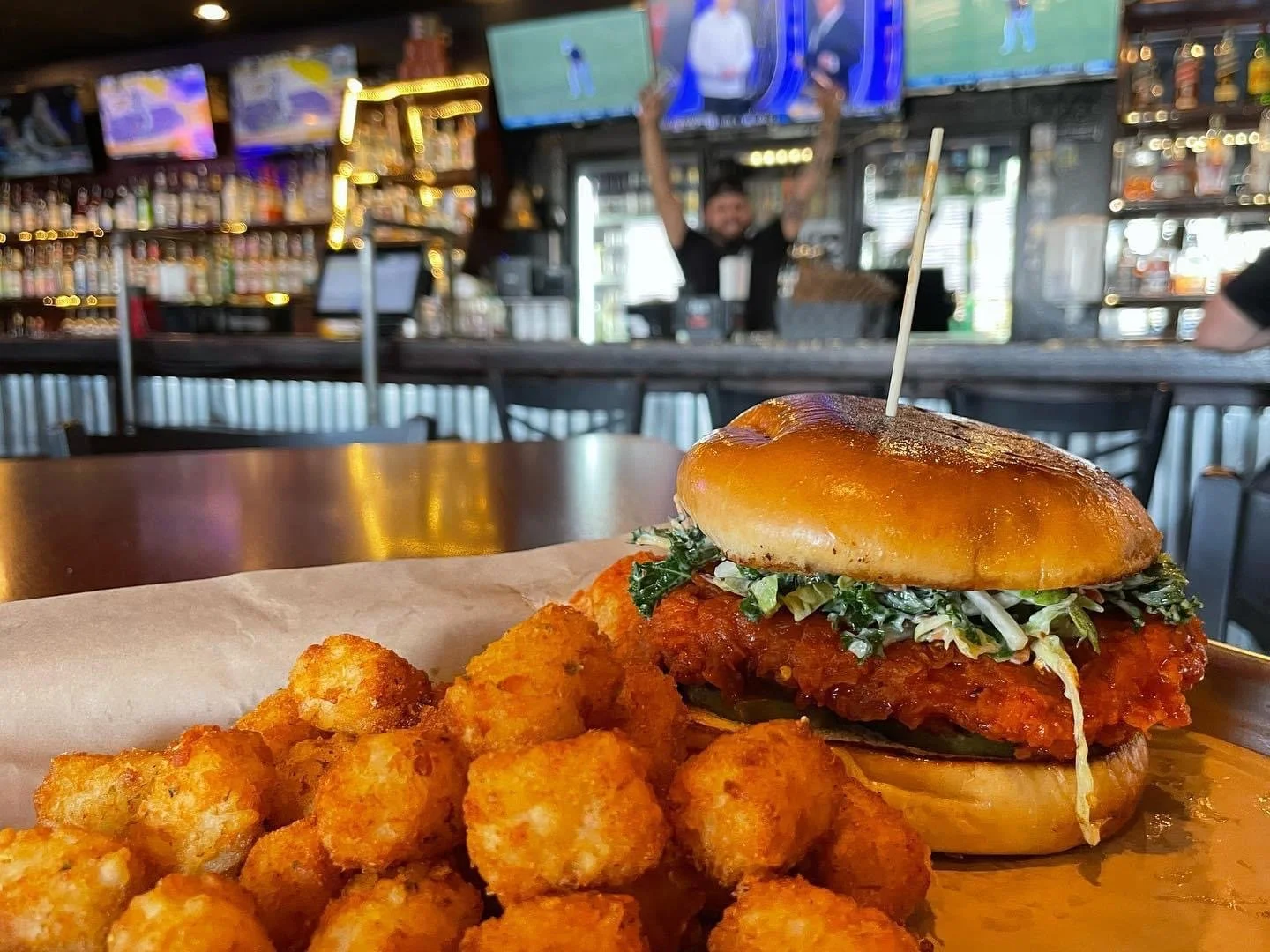biscuits & crispy tots topped with cheesy scramble, gravy & chopped bacon with chives