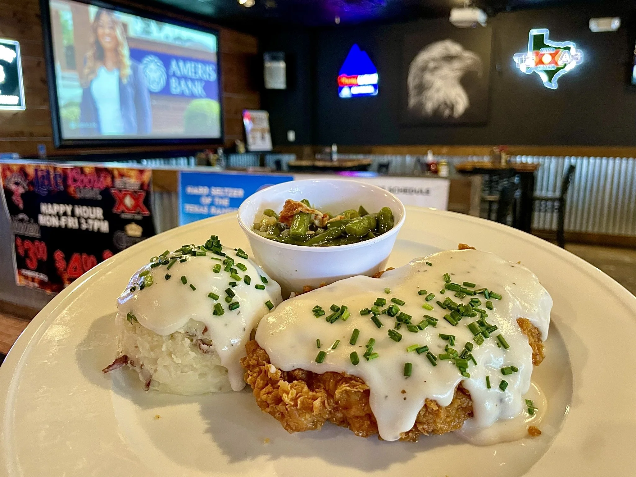 Looking for the best daily food and drink specials near me in Saginaw, TX? Eagles Point Bar and Grill is your go-to spot for crave-worthy comfort food and ice-cold drinks. From country fried chicken and smoked meatloaf to tacos, flatbreads, and fish & chips, we've got something delicious every day. Sip on margaritas or enjoy top-shelf pours like Crown, Tito’s, and Jameson— happy hour specials all week long. Come see why locals say we have the best bar and grill specials near Fort Worth, Haslet, and Lake Worth!